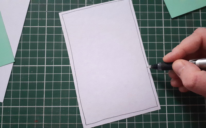 - Faire une ligne fine tout autour de la carte, à quelques millimètres du bord